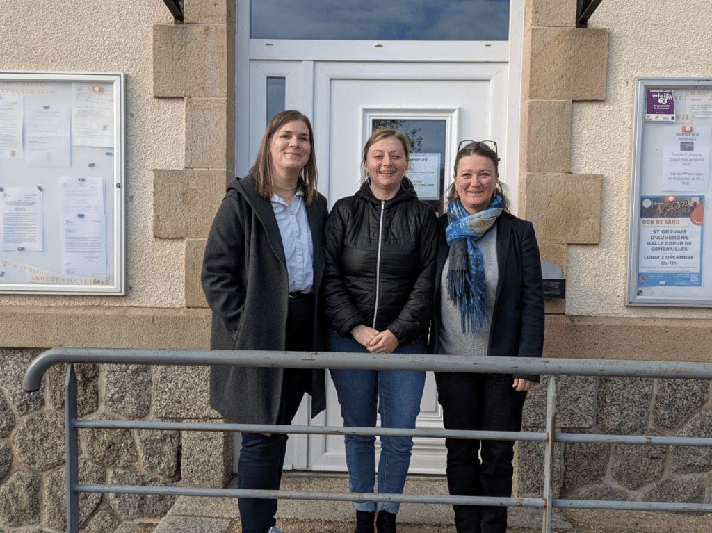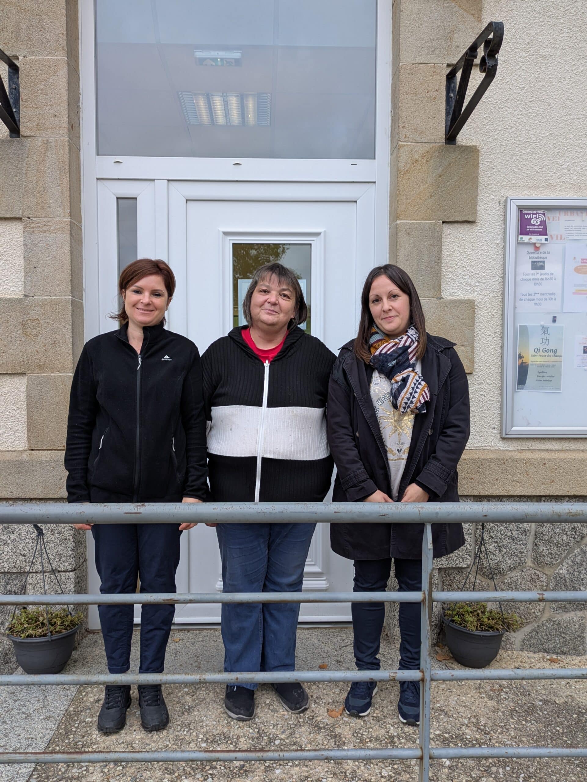 Virginie CUNIAC (cantine et entretien des locaux, Sylvie CHENILLE (aide cantine et entretien des locaux/voirie),Célia MOURDON (ATSEM et garderie périscolaire)